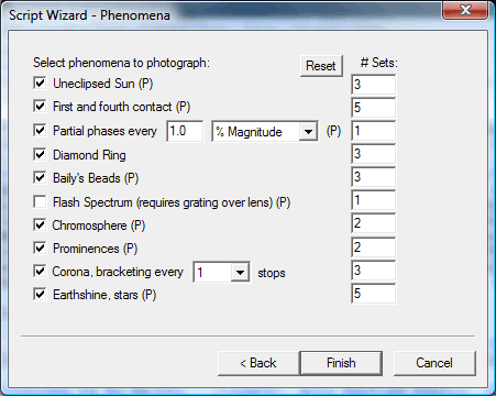 - Script Generation Wizard. Free version generates scripts to photograph Diamond Ring and corona. Pro includes 8 additional phenomena.
